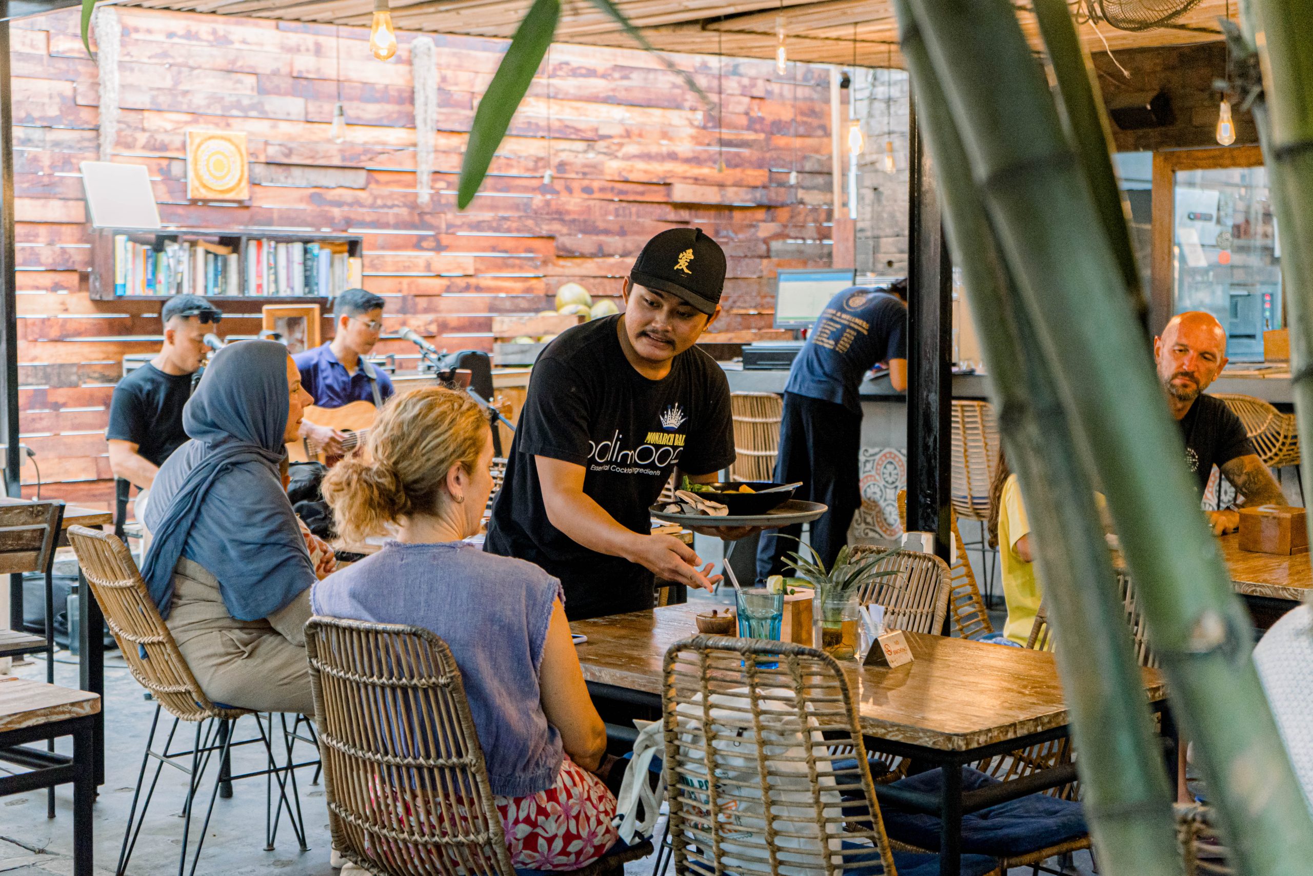 More than just a restaurant, Samadi Bali is a lifestyle destination. Guests can enjoy a peaceful meal surrounded by lush greenery, often combined with yoga classes, wellness activities, or a visit to the Sunday Market. It’s a place where food becomes part of a holistic experience of balance and wellbeing.
