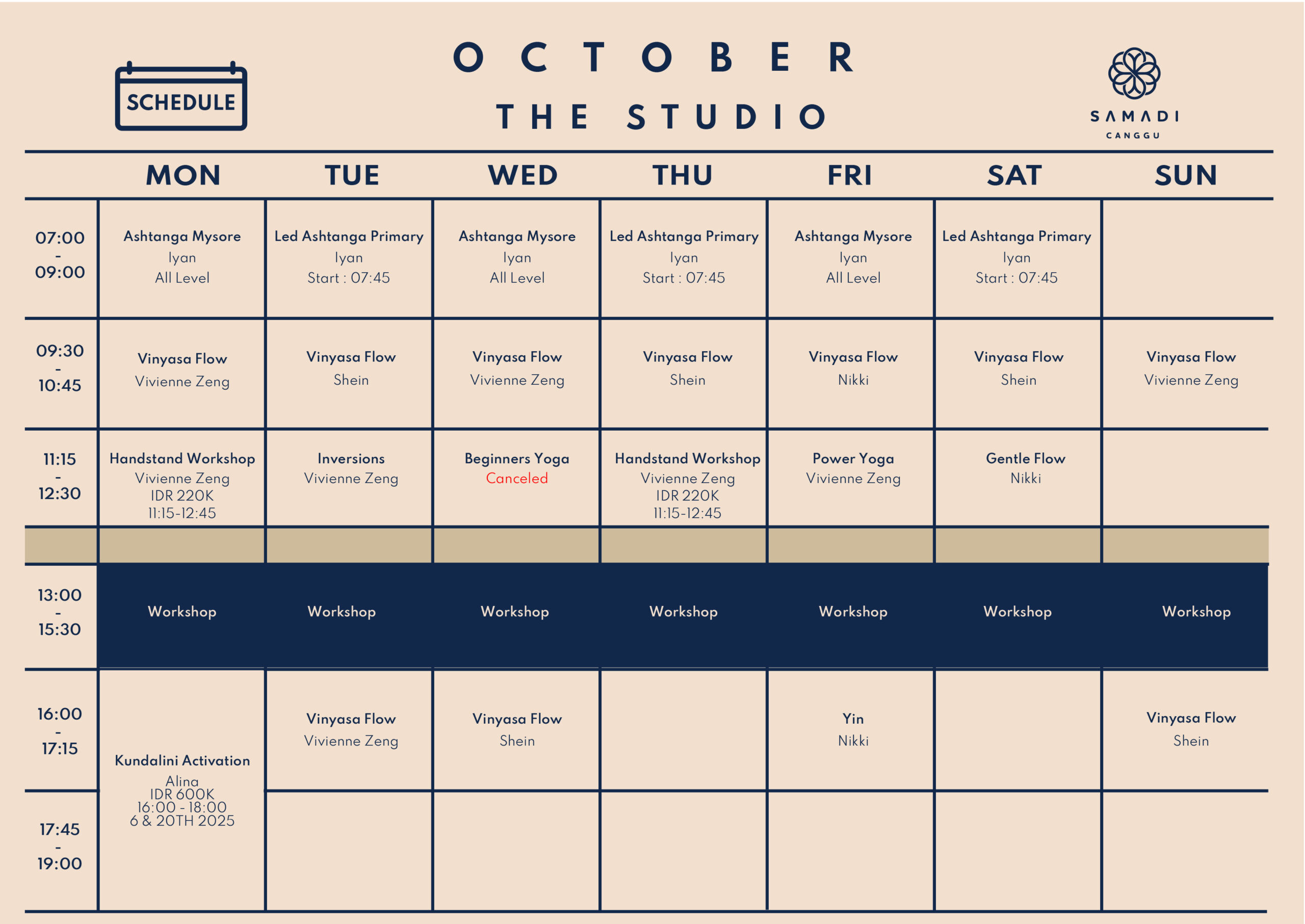 YOGA CLASS SCHEDULES IN SAMADI CANGGU